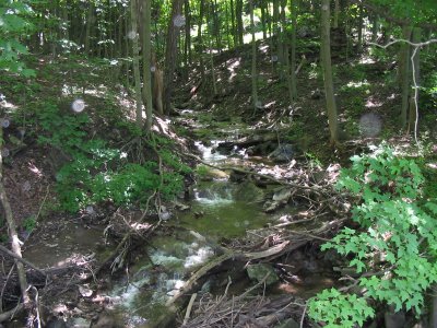 ![]() That pale streak across the middle is Ancaster Creek. We're about to cross Old Dundas Road, just where Lower Lionsgate turns off. We've never noticed the Bruce Trail crossing here. |
